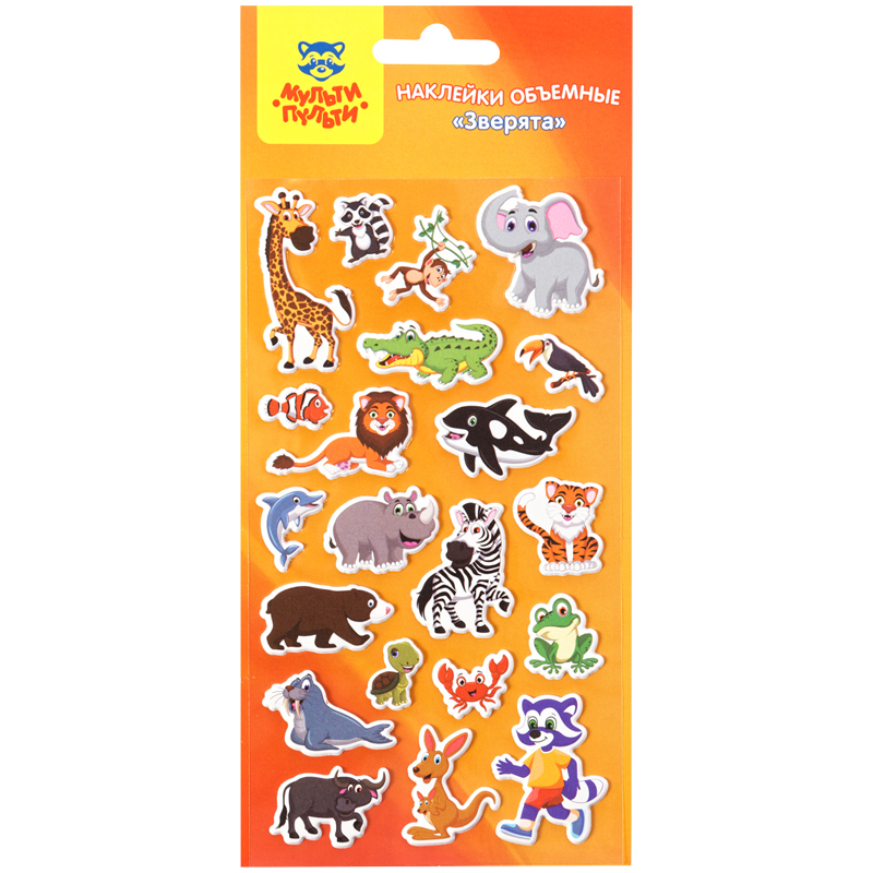 Наклейки объемные Мульти-Пульти "Зверята", 10*22см, 21 наклейка, инд. уп., европодвес