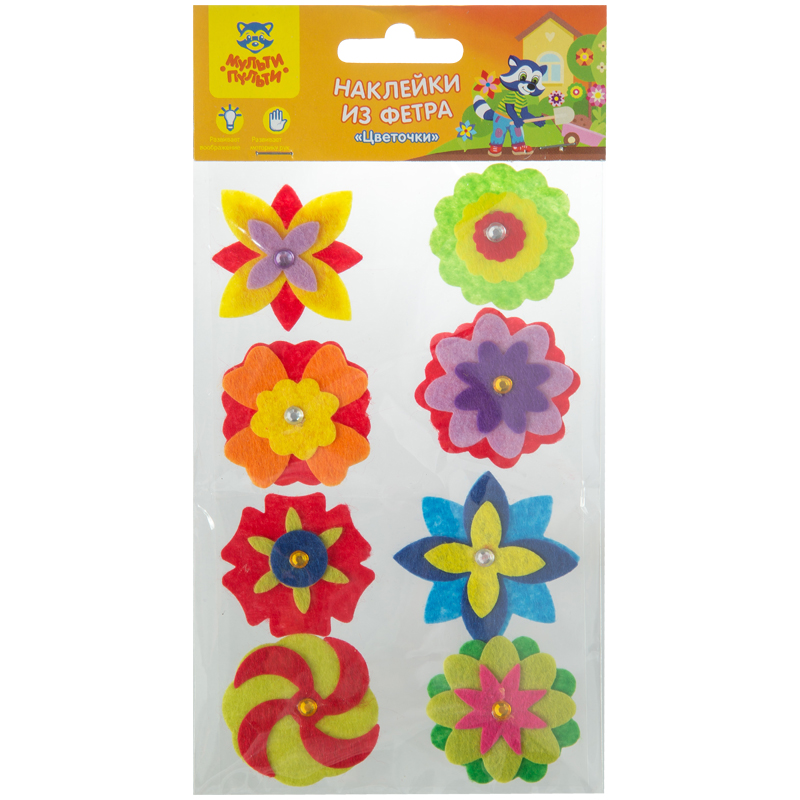 Наклейки из фетра Мульти-Пульти "Цветочки" (на пленке), 8шт., пакет, европодвес