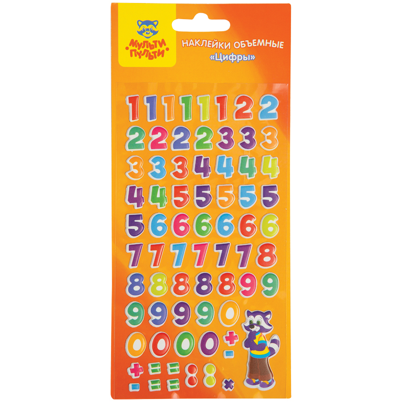 Наклейки объемные Мульти-Пульти "Цифры", 9,5*17,5см, пакет,европодвес