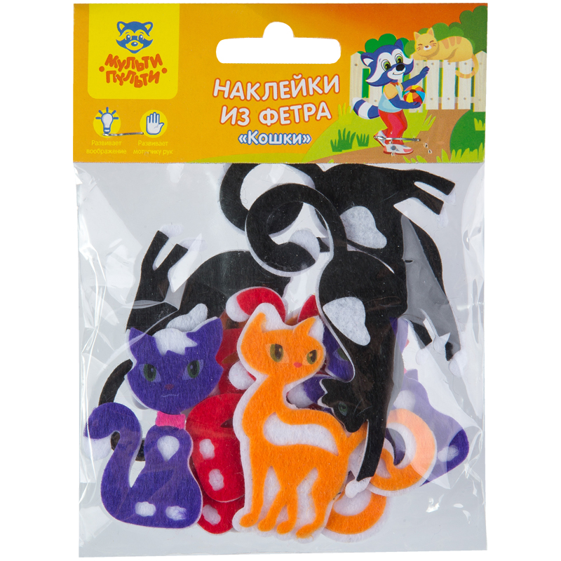 Наклейки из фетра Мульти-Пульти "Кошки", 12шт., пакет, европодвес