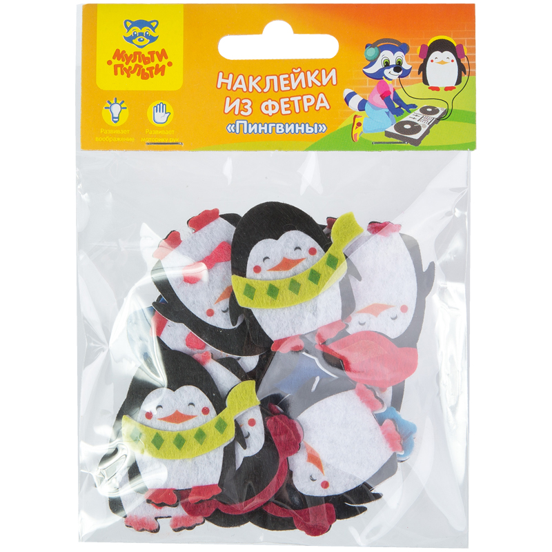 Наклейки из фетра Мульти-Пульти "Пингвины", 14шт., пакет, европодвес