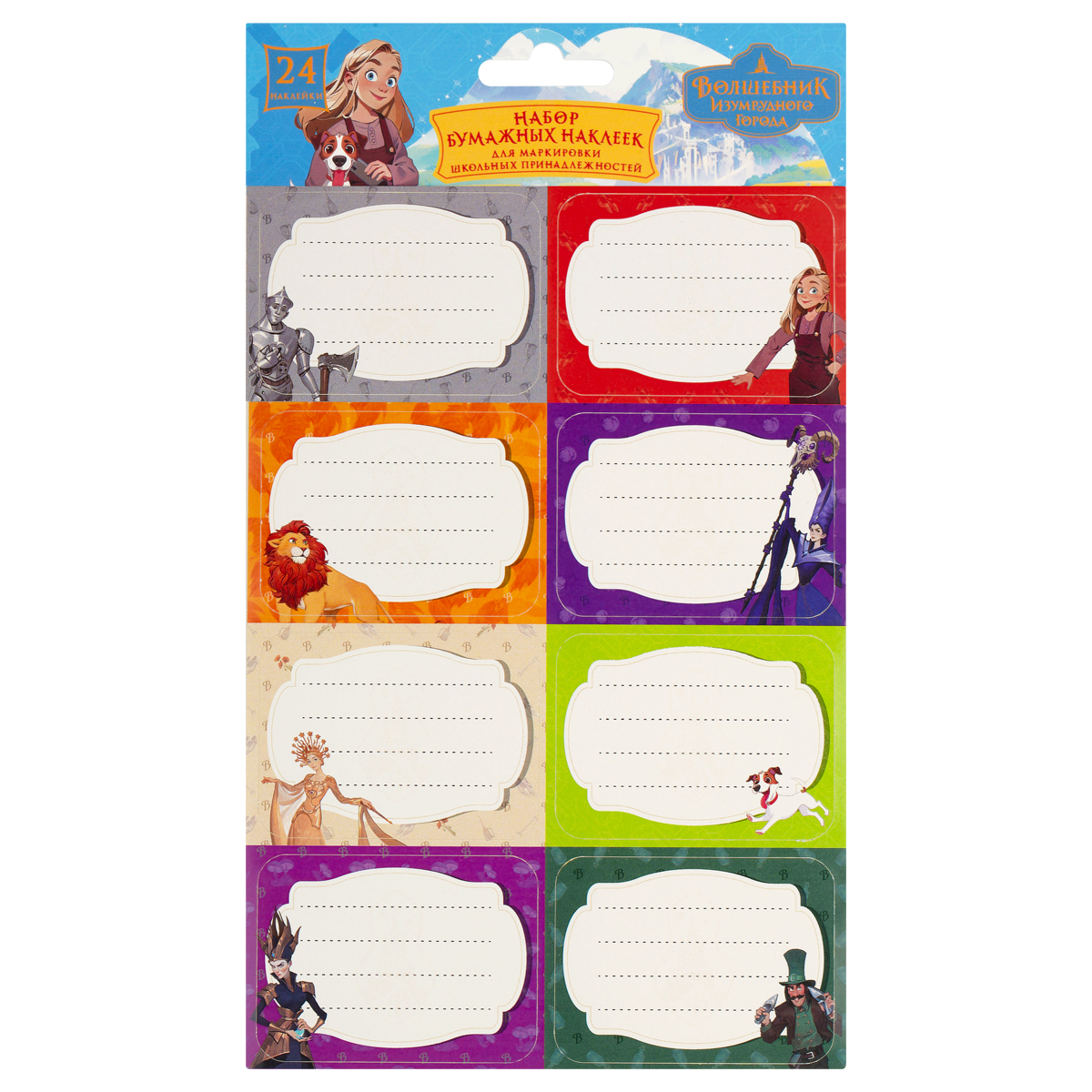 Набор бумажных наклеек для маркировки школьных принадлежностей "Волшебник изумрудного города", 140*210, 24 наклейки, европодвес