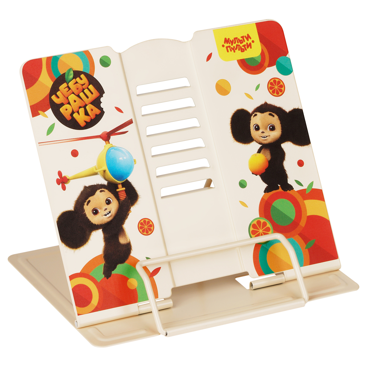 Подставка для книг Мульти-Пульти "Чебурашка", регулируемый угол наклона, металлическая, с рисунком на корпусе