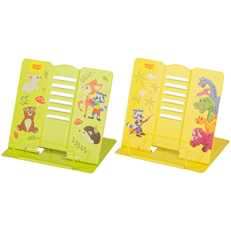 Подставка для книг Мульти-Пульти "Приключения Енота", регулируемый угол наклона, металлическая, с рисунком на корпусе, ассорти
