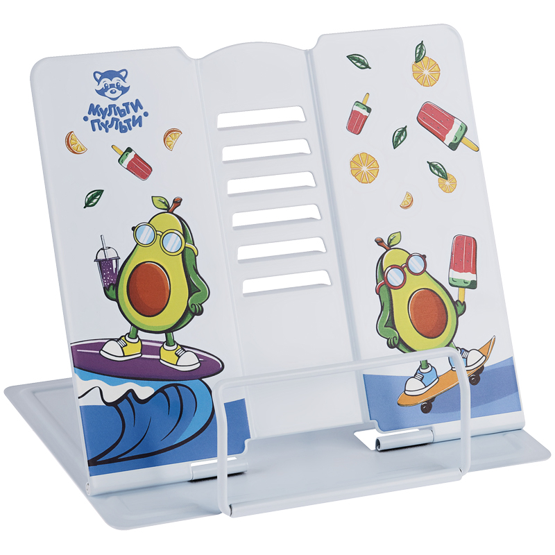 Подставка для книг Мульти-Пульти "Авокадо", регулируемый угол наклона, металлическая, с рисунком на корпусе