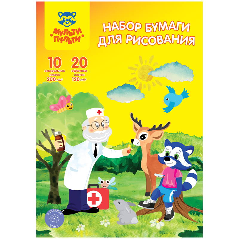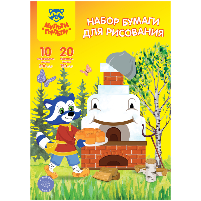 Набор бумаги для рисования А4, Мульти-Пульти, (10л. акварельная Гознак 200г/м2, 20л. офсетная 120г/м2), в папке