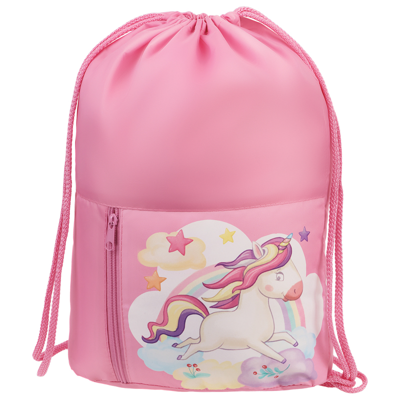 Мешок для обуви 1 отделение Мульти-Пульти "Unicorn", 340*420мм, карман на молнии, розовый