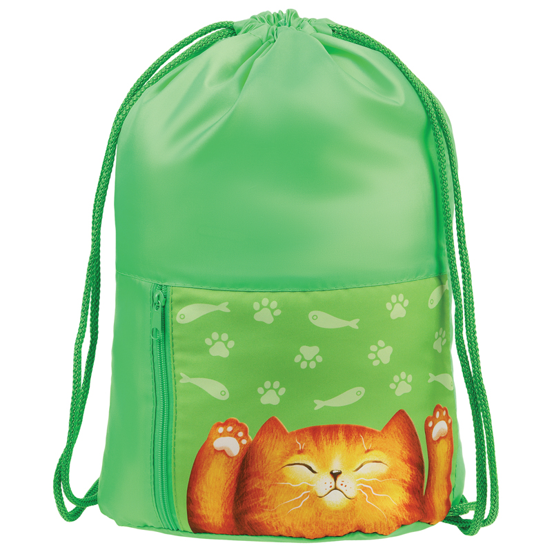 Мешок для обуви 1 отделение Мульти-Пульти "Lazy Cat", 340*420мм, карман на молнии, зеленый