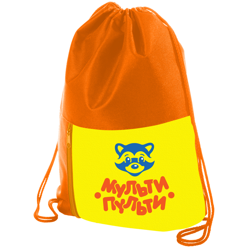 Мешок для обуви 1 отделение Мульти-Пульти "Приключения Енота", 340*420мм, карман на молнии, оранжевый