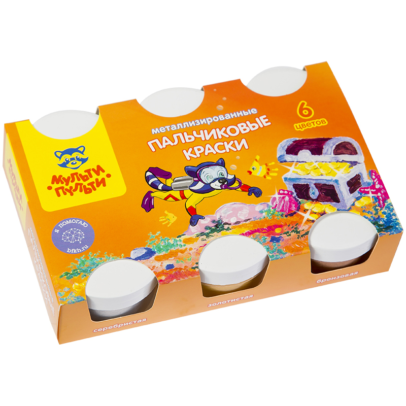 Краски пальчиковые Мульти-Пульти "Морские приключения Енота", 06 цветов, 360г, металлиз., картон