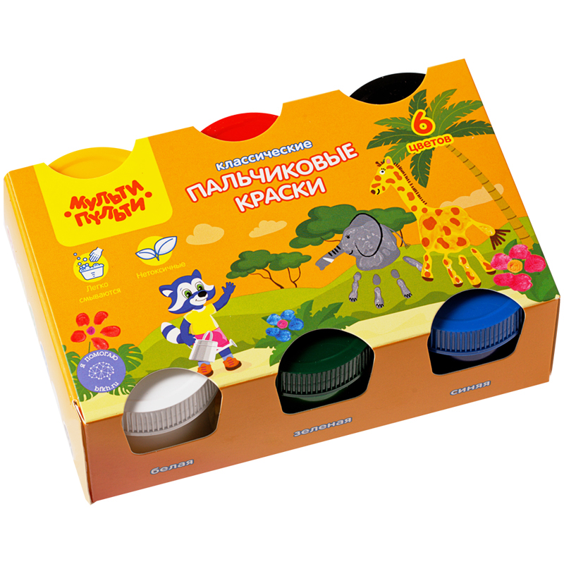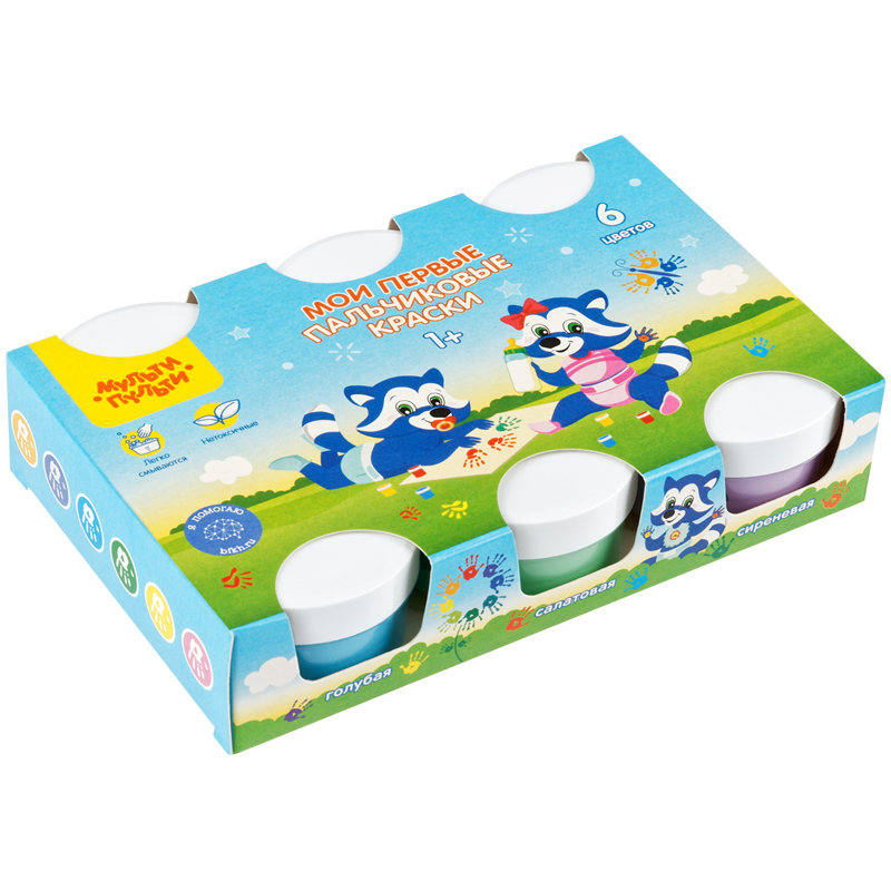 Краски пальчиковые Мульти-Пульти, 06 цветов, 210мл, классические, картон
