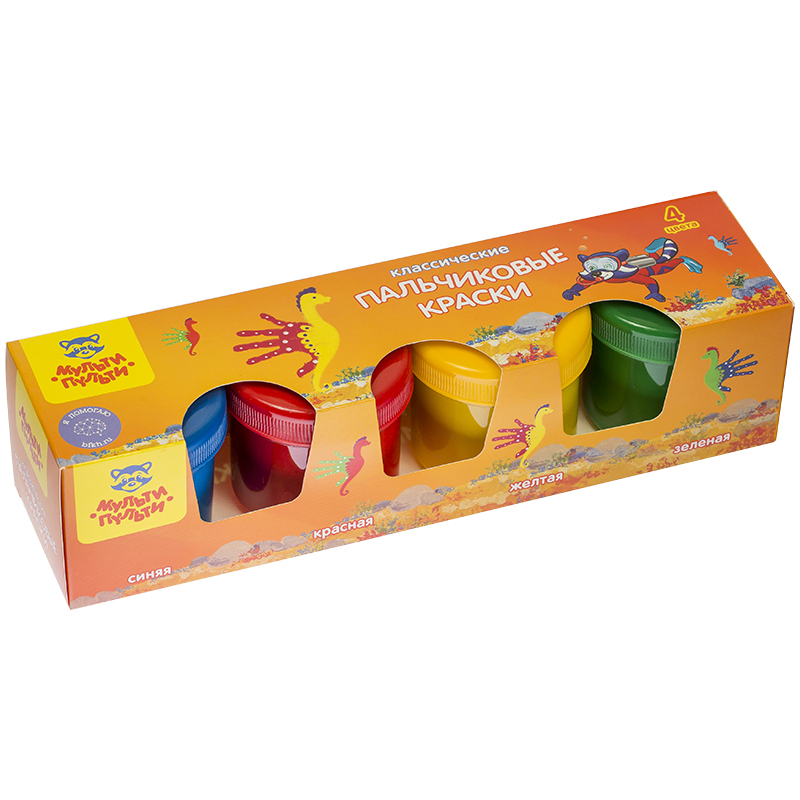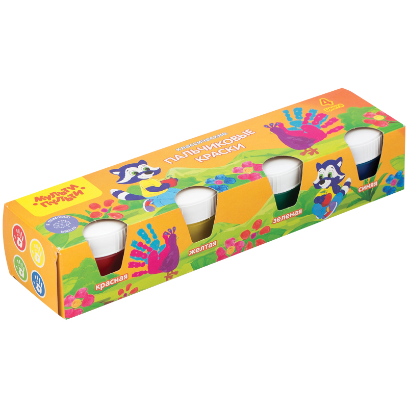 Краски пальчиковые классические Мульти-Пульти "Мои первые пальчиковые краски", 4 цвета, 140 мл, для малышей, 1+, картон