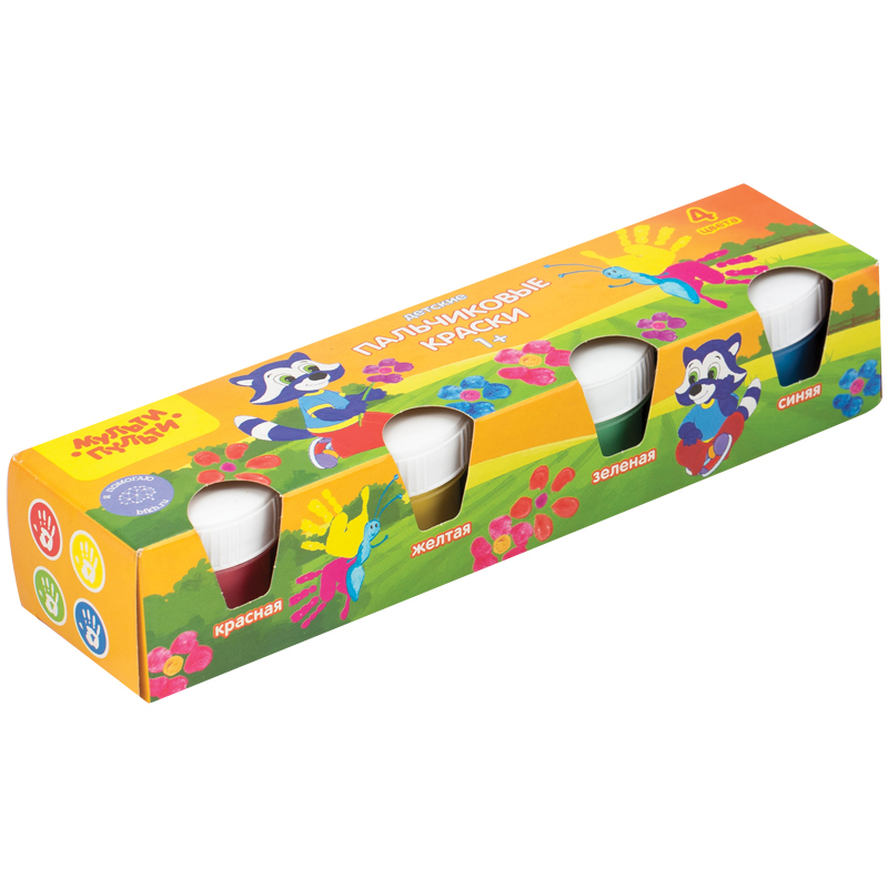 Краски пальчиковые Мульти-Пульти "Приключения Енота", 04 цвета, 140мл, классические, картон
