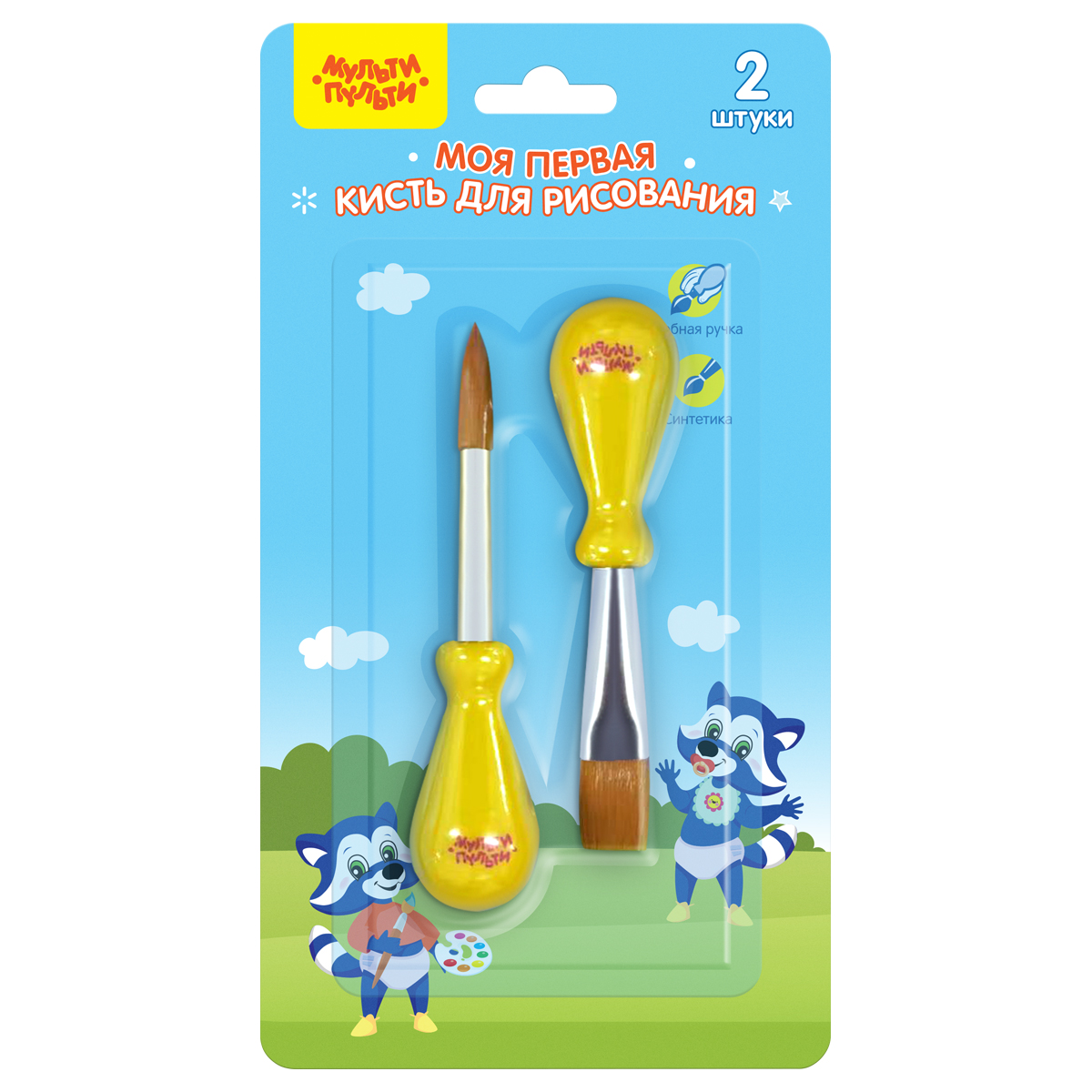 Набор кистей детских для рисования Мульти-Пульти «Моя первая кисть», 2шт., синтетика, блистер, европодвес