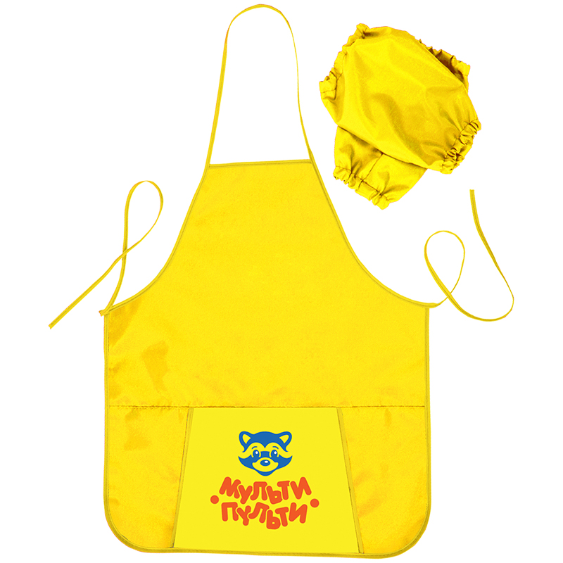 Фартук с нарукавниками Мульти-Пульти "Приключения Енота", 53,5*44,5см, 1 карман, желтый