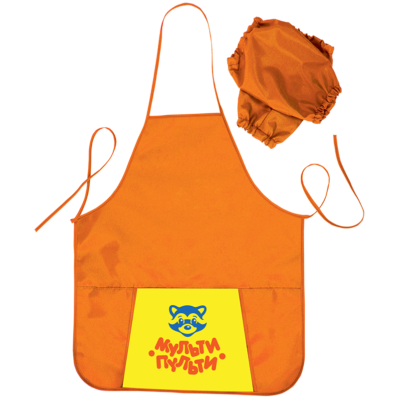 Фартук с нарукавниками Мульти-Пульти "Приключения Енота", 53,5*44,5см, 1 карман, оранжевый