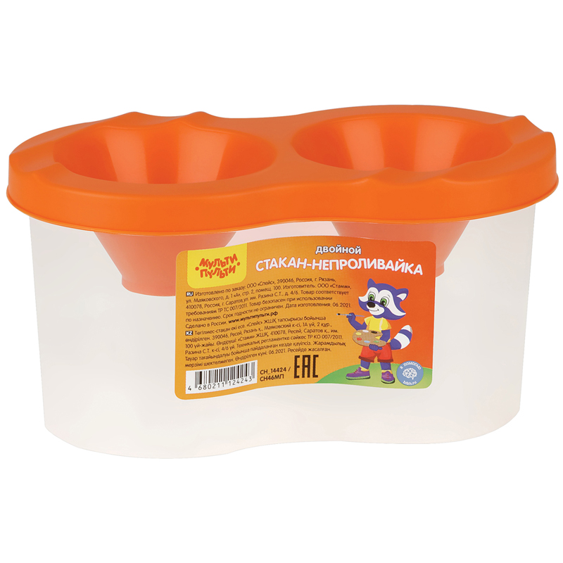 Стакан-непроливайка Мульти-Пульти двойной с крышкой (полный - 250*2мл, до уровня - 50*2мл)