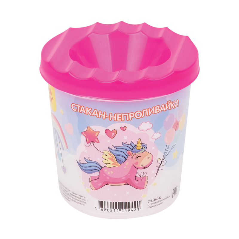 Стакан-непроливайка Мульти-Пульти "Единорожка" (полный 250мл, до уровня 50мл), с рисунком