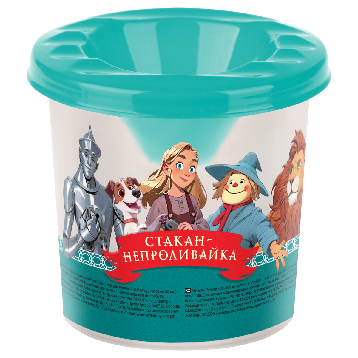 Стакан-непроливайка Мульти-Пульти "Волшебник Изумрудного города" (полный 250мл, до уровня 50мл), с рисунком