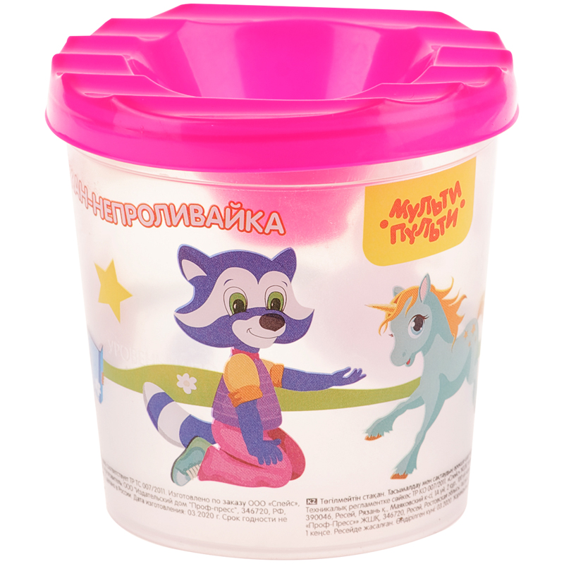 Стакан-непроливайка Мульти-Пульти "Веселые друзья" (полный 250мл, до уровня 50мл), с рисунком