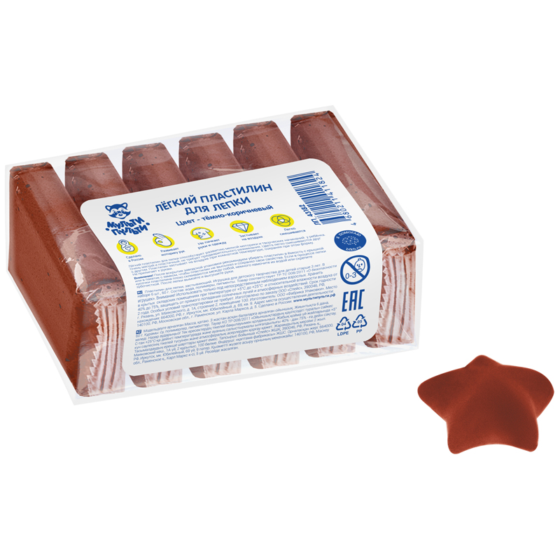 Легкий пластилин для лепки Мульти-Пульти, темно-коричневый, 6шт., 60г, прозрачный пакет