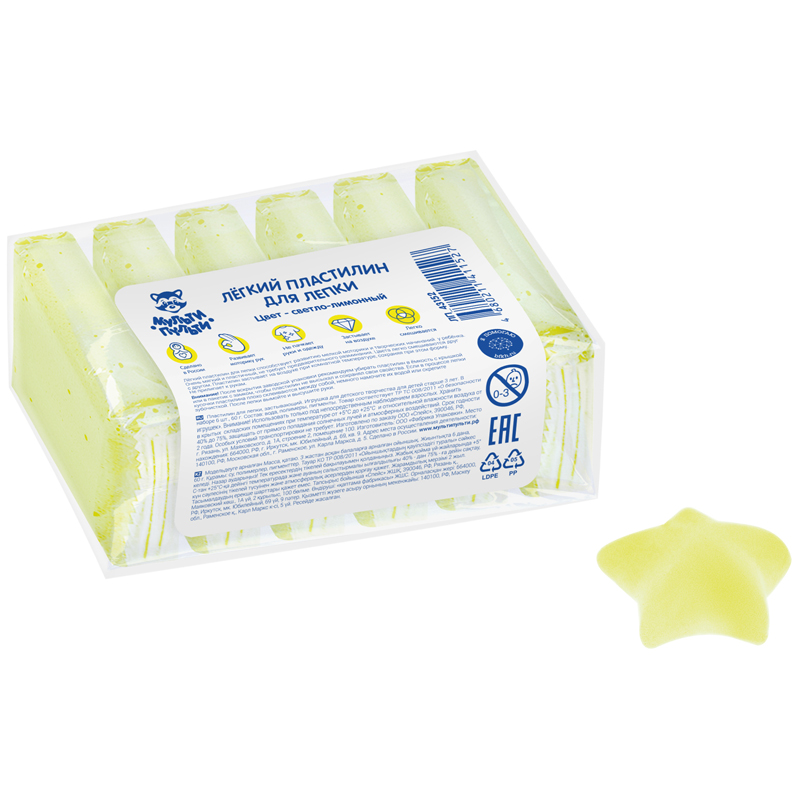 Легкий пластилин для лепки Мульти-Пульти, светло-лимонный, 6шт., 60г, прозрачный пакет