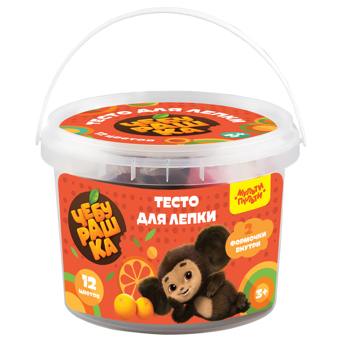 Тесто для лепки Мульти-Пульти "Чебурашка", 12 цветов*30г, пластиковое ведро + 2 формочки Чебы на корексе