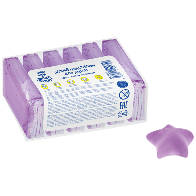 Легкий пластилин для лепки Мульти-Пульти, светло-сиреневый, 6шт., 60г, прозрачный пакет