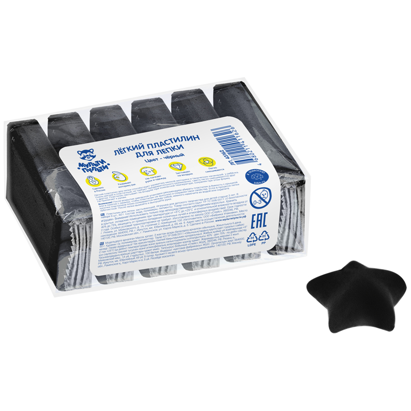 Легкий пластилин для лепки Мульти-Пульти, черный, 6шт., 60г, прозрачный пакет