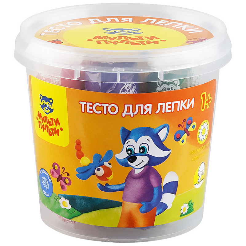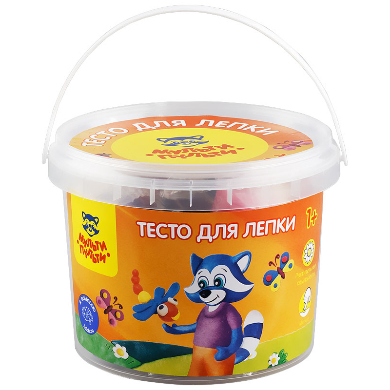 Тесто для лепки Мульти-Пульти "Енот в деревне", 12 цветов*30г, пластиковое ведро
