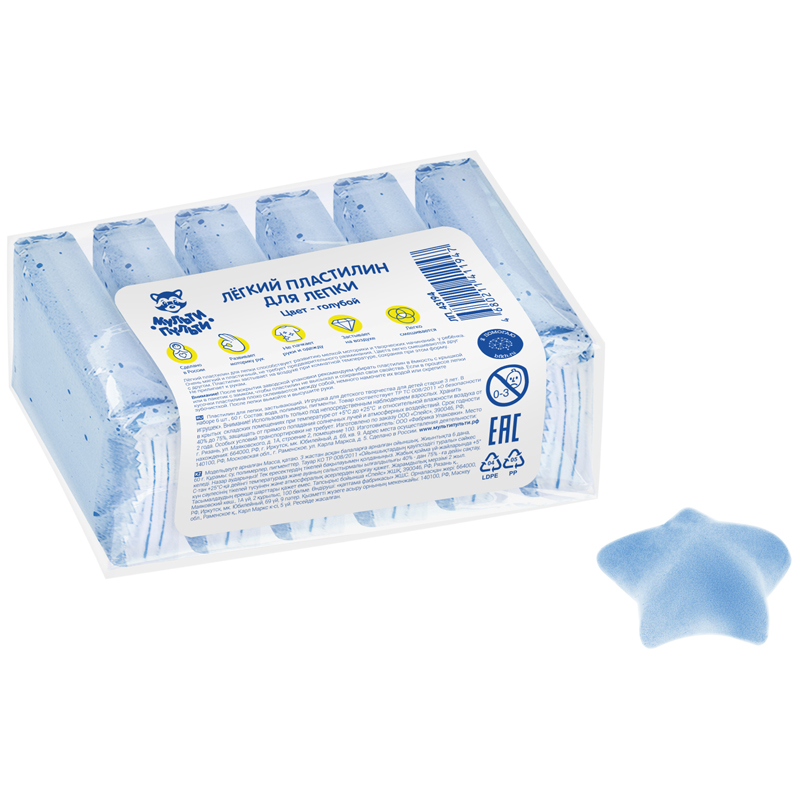 Легкий пластилин для лепки Мульти-Пульти, голубой, 6шт., 60г, прозрачный пакет
