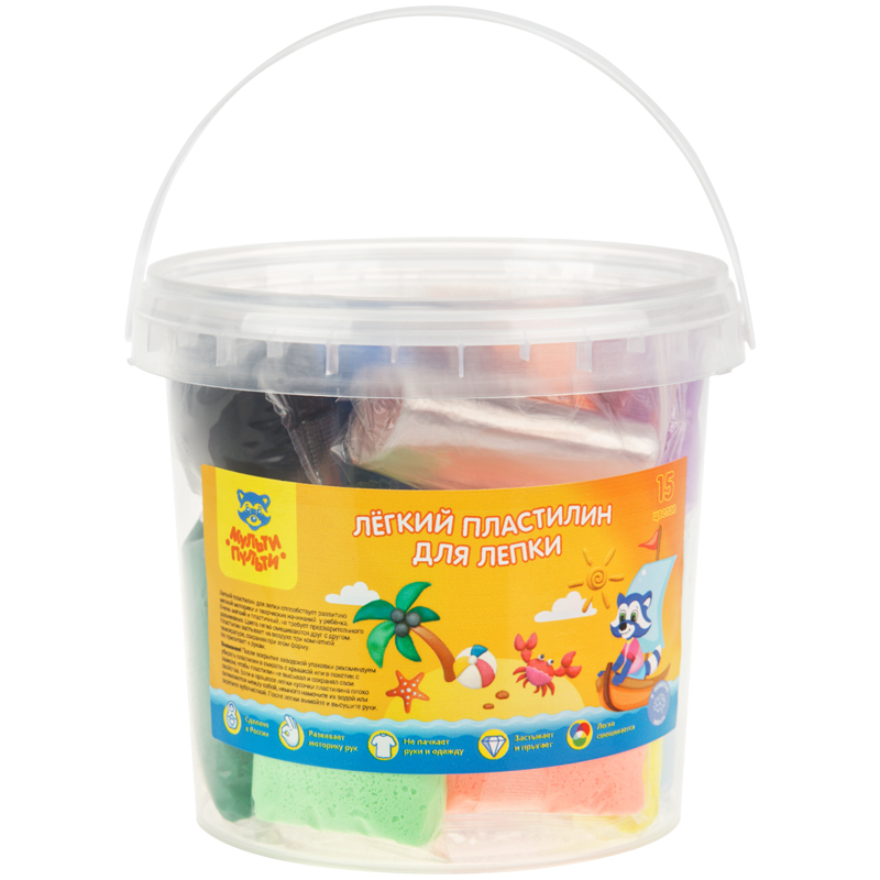 Легкий пластилин для лепки Мульти-Пульти, 15 цветов, 150г, в ведерке