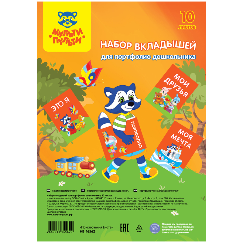 Набор вкладышей (10л.) А4 Мульти-Пульти, для портфолио дошкольника