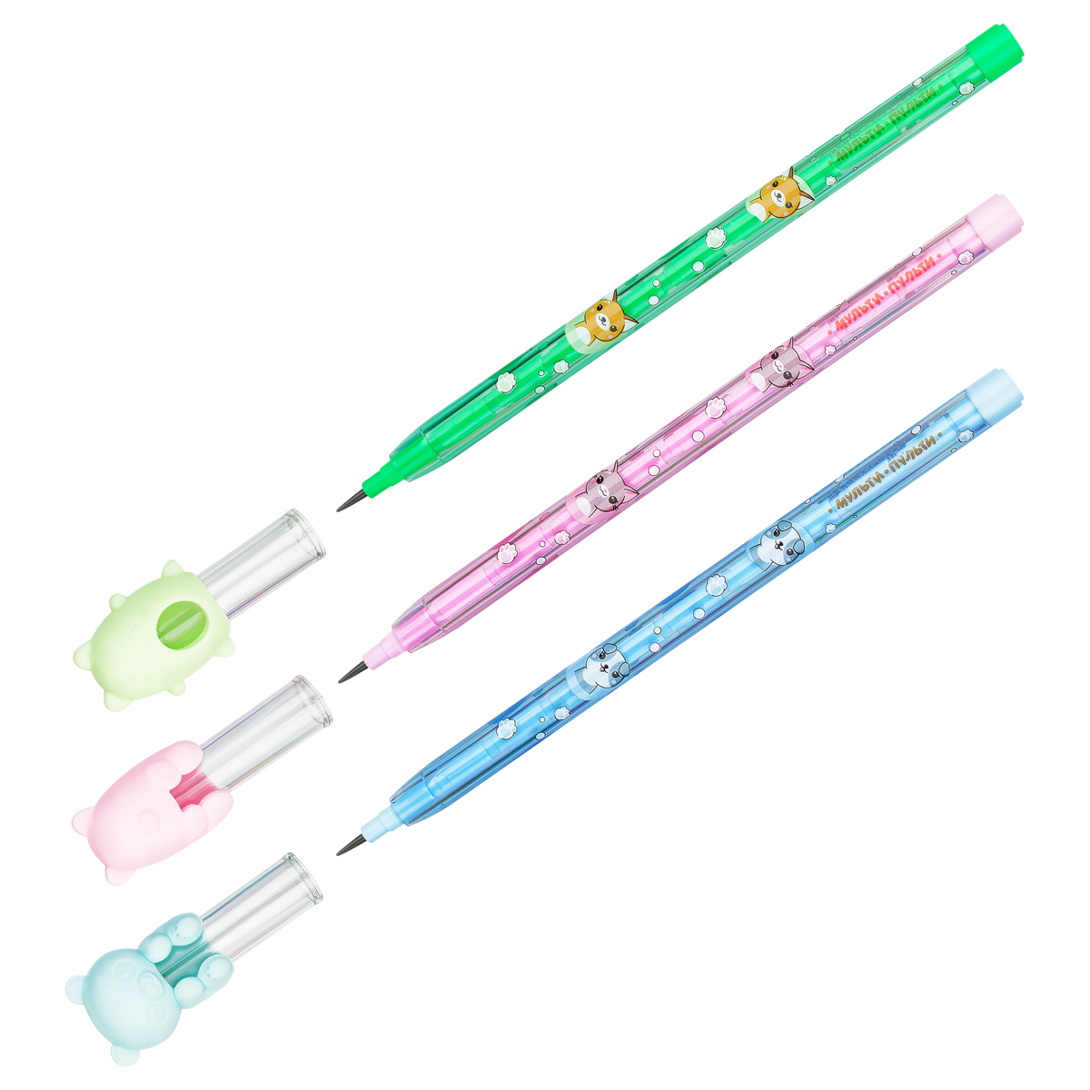 Карандаш сегментный Мульти-Пульти "Зверята", с топпером, ассорти