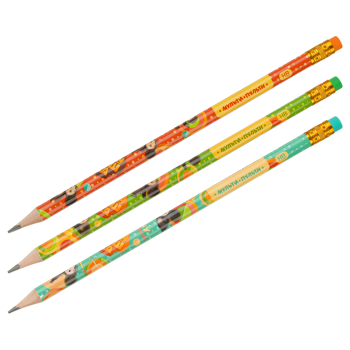 Карандаш ч/г Мульти-Пульти "Чебурашка" HB, с ластиком, круглый, заточен., ассорти