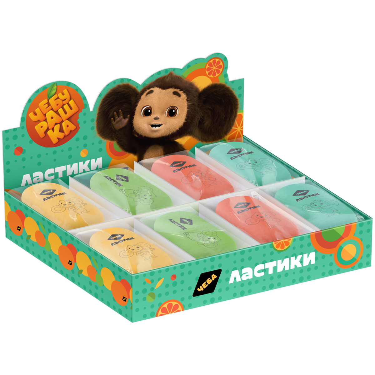 Ластик Мульти-Пульти "Чебурашка", прямоугольный, термопластичная резина, 35*25*8мм