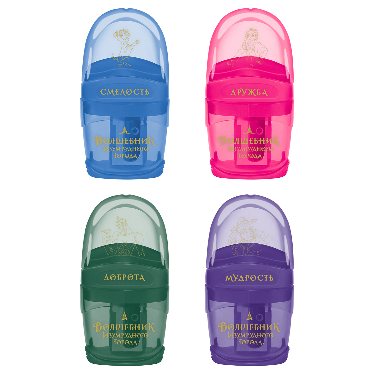 Точилка пластиковая с ластиком Мульти-Пульти "Волшебник Изумрудного города" 1 отверстие, контейнер, ассорти