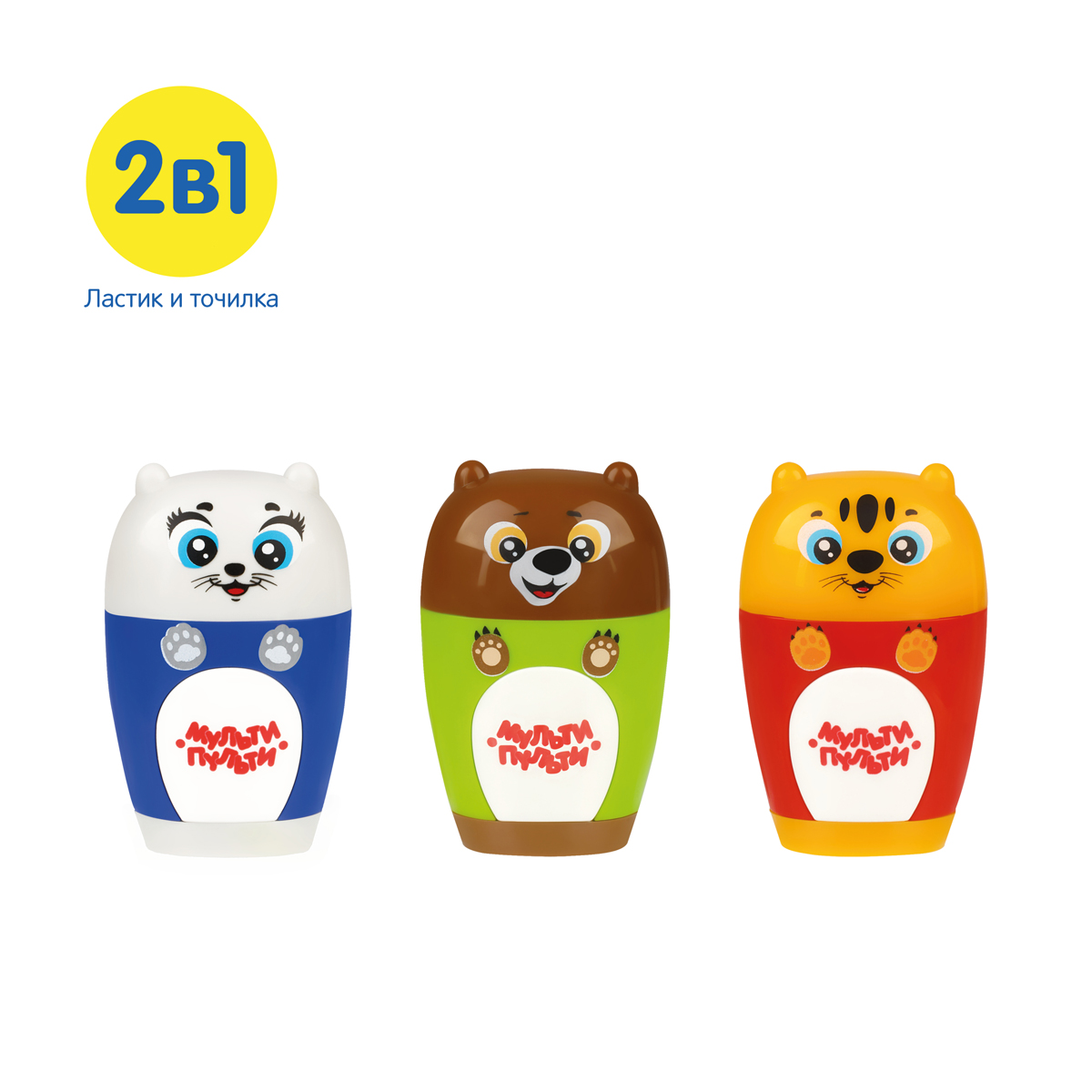 Точилка пластиковая с ластиком Мульти-Пульти "Зверята" 1 отверстие, контейнер, ассорти