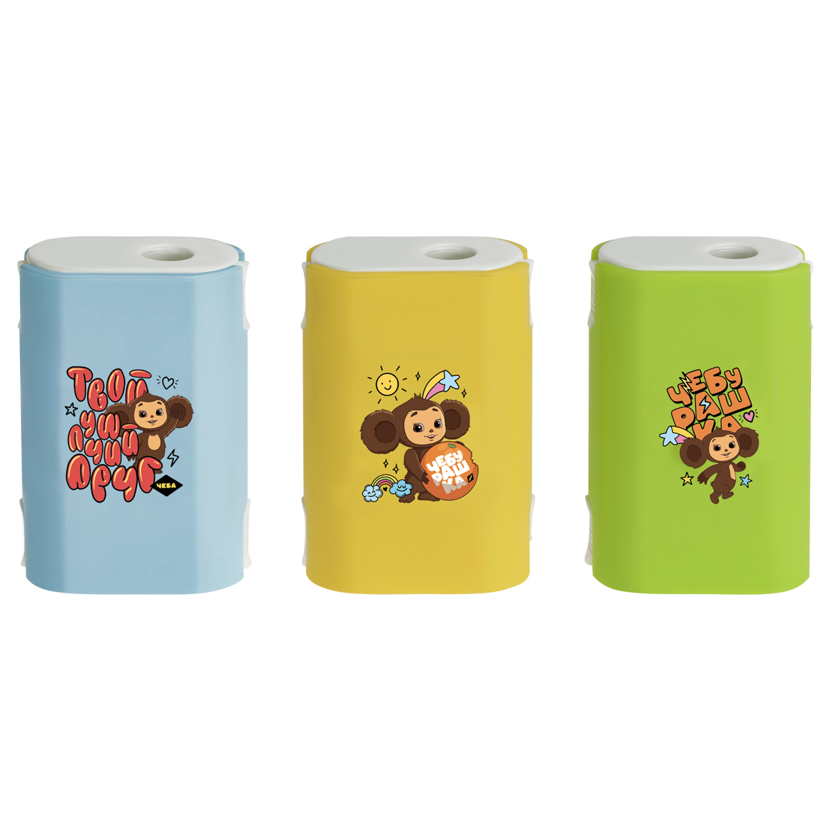 Точилка пластиковая Мульти-Пульти "Чебурашка" 1 отверстие, контейнер, ассорти