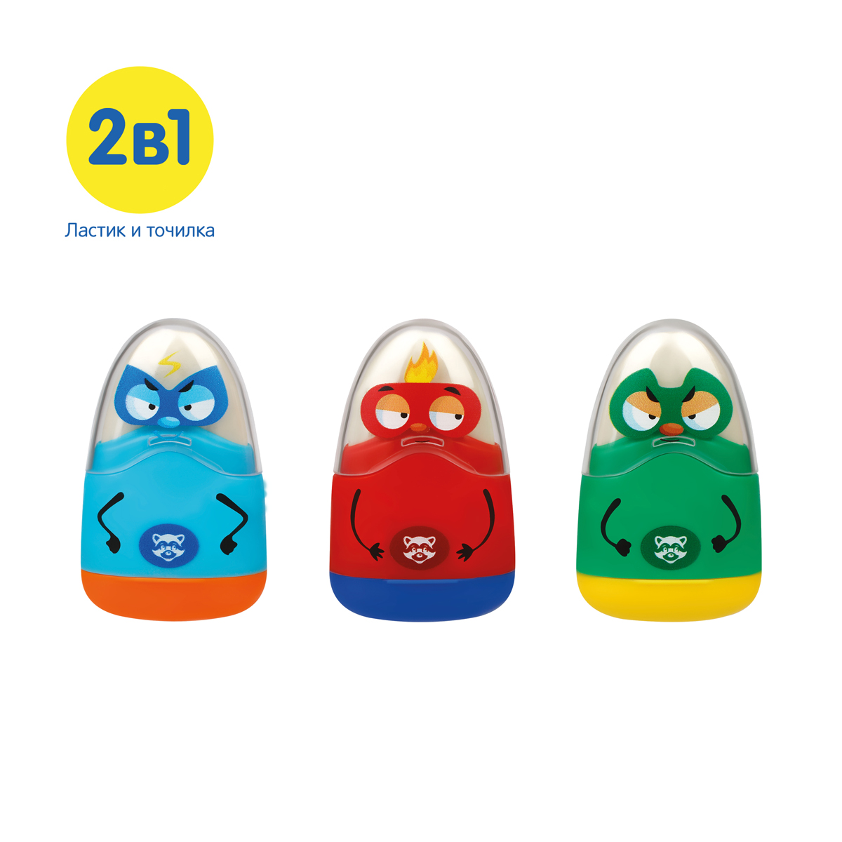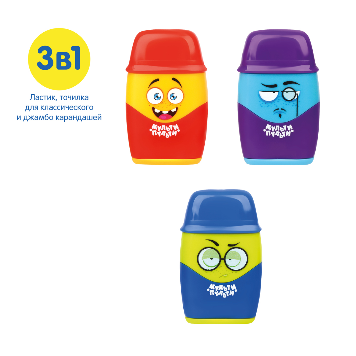 Точилка пластиковая с ластиком Мульти-Пульти "Человечки" 2 отверстия, контейнер, ассорти