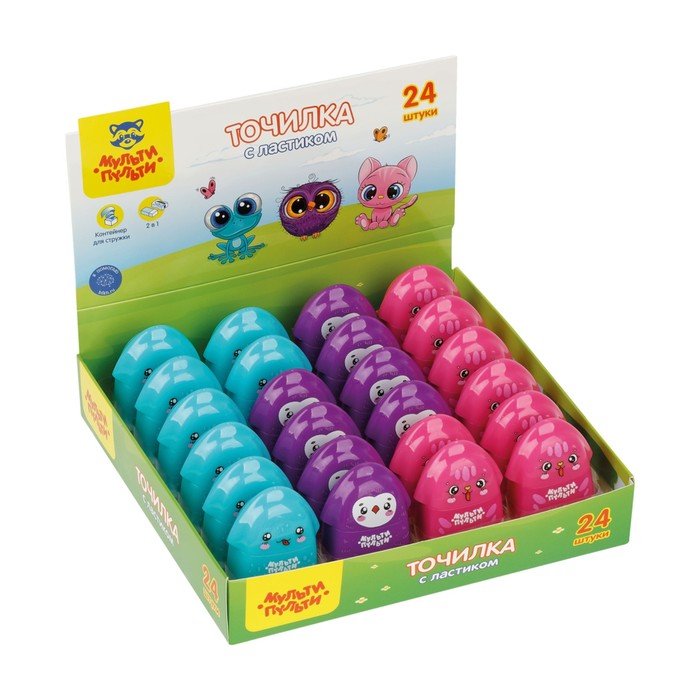 Точилка пластиковая с ластиком Мульти-Пульти "Милашки" 1 отверстие, контейнер, ассорти
