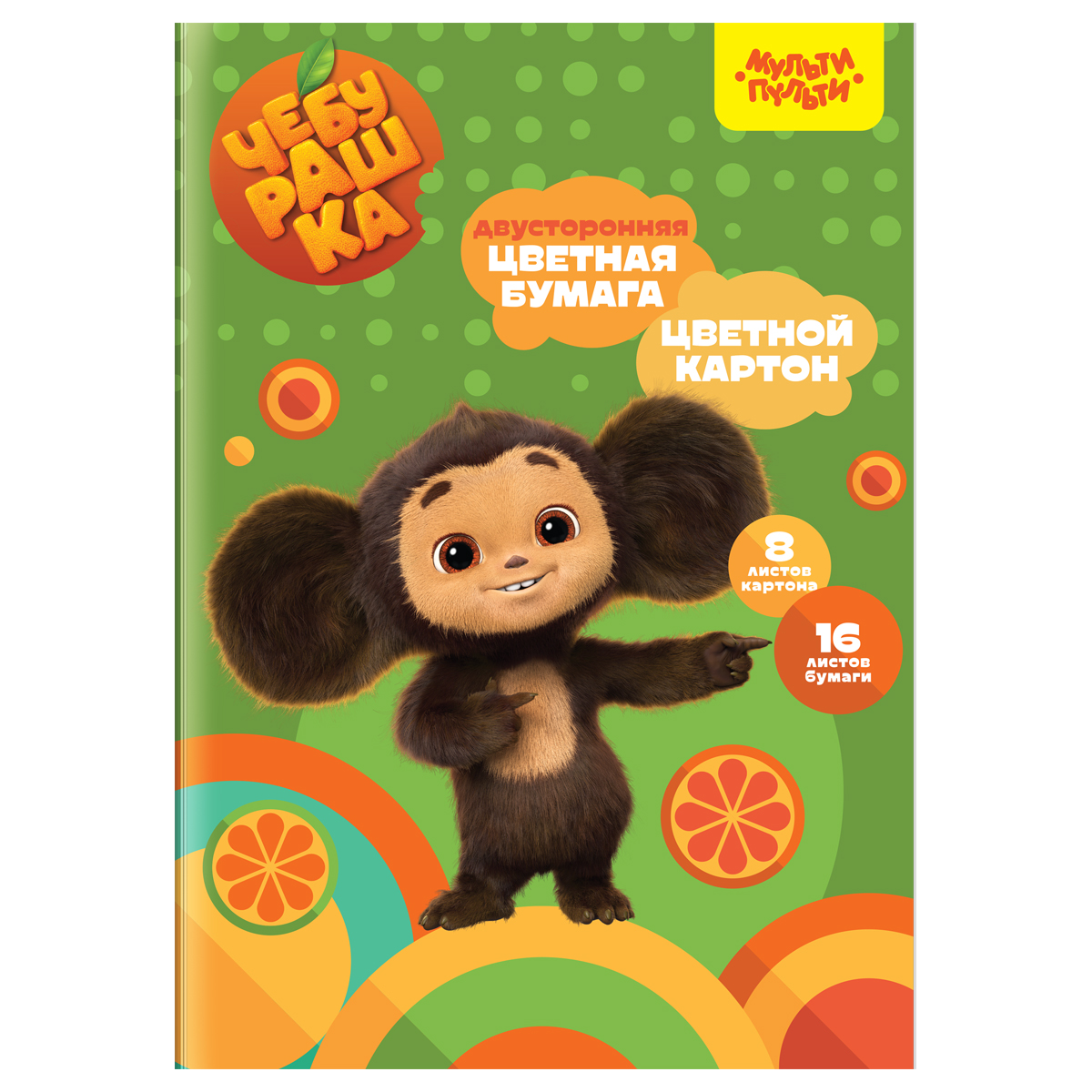 Набор цв. немел. картона 8л. и двуст. газет. цв. бумаги 16л, А4, Мульти-Пульти, на склейке, "Чебурашка"