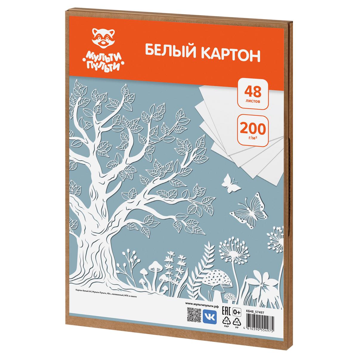 Картон белый A4, Мульти-Пульти, 48л., мелованный, МГК в пакете