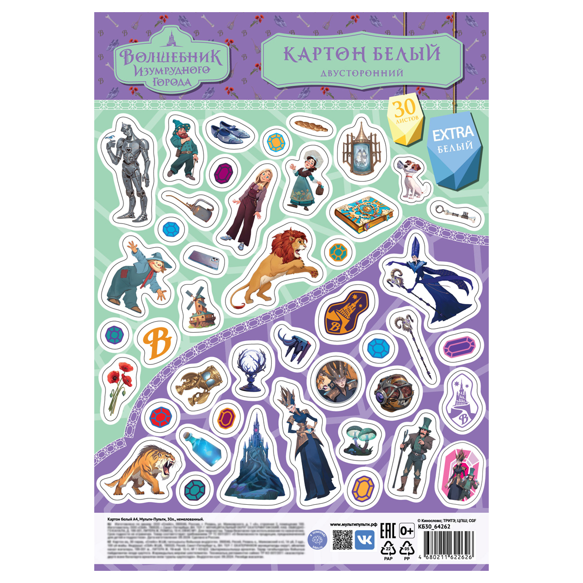 Картон белый A4, Мульти-Пульти, 30л., немелованный, в пакете, "Волшебник изумрудного города"