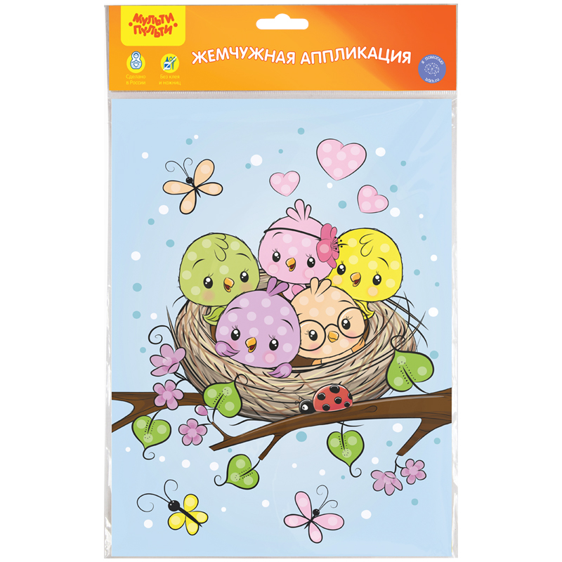 Аппликация жемчужная Мульти-Пульти "Птенчики", 21*29,5см, с раскраской, европодвес