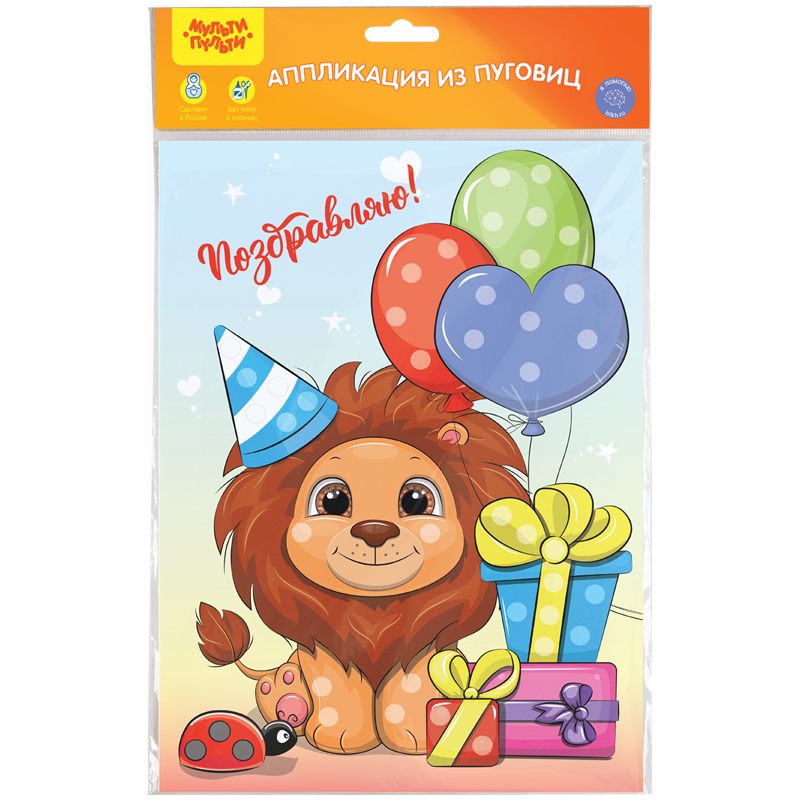 Аппликация из пуговиц Мульти-Пульти "Поздравляю!", 21*29,5см, с раскраской, европодвес