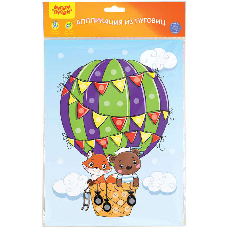 Аппликация из пуговиц Мульти-Пульти "Воздушный шар", 21*29,5см, с раскраской, европодвес