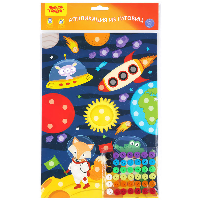 Аппликация из пуговиц Мульти-Пульти "Космос", 21*29,5см, с раскраской, европодвес