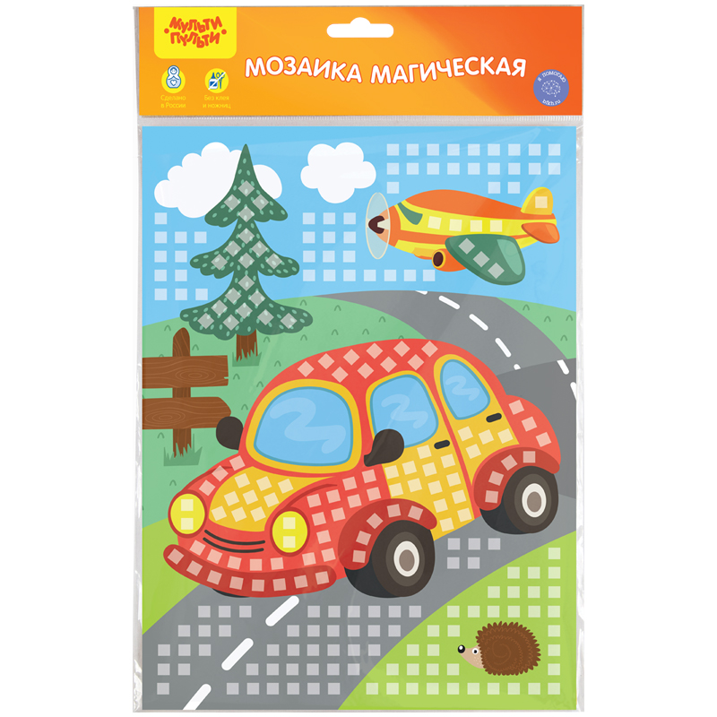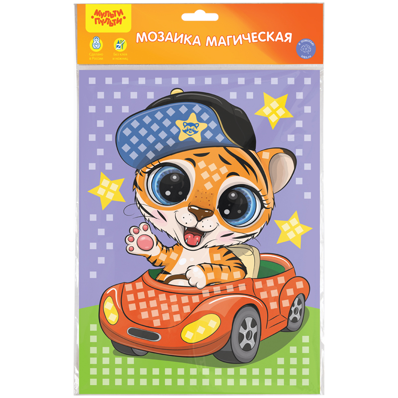 Мозаика магическая на самоклеящейся основе Мульти-Пульти "Тигренок в машине", 21*29,5см, из мягкого пластика, с раскраской, европодвес