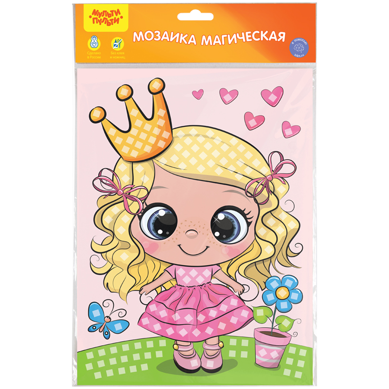 Мозаика магическая на самоклеящейся основе Мульти-Пульти "Принцесса", 21*29,5см, из мягкого пластика, с раскраской, европодвес
